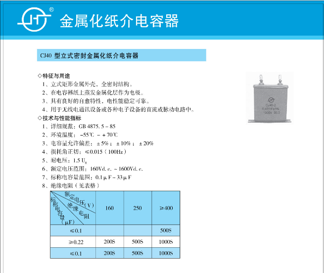 在电容器纸上蒸发金属化层作电极,浸优质浸渍料,长期贮存性能稳定。